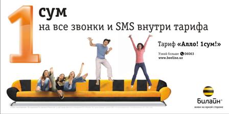 на сумму от $0,3 до $2,5, а если вы обслуживаетесь на сумовом тарифном плане, то на сумму от 500 сум до 4200 сум.